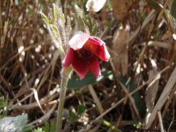 井原山山頂直下に自生する「オキナグサ」 この付近で見られる唯一の一株です。 以前は多く見られたそうですが、盗掘などにより最後の一株になりました。 オキナグサのHPへリンク |