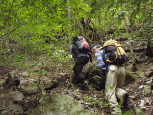 歩きやすい箇所を選んで尾根を目指します。