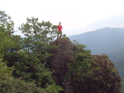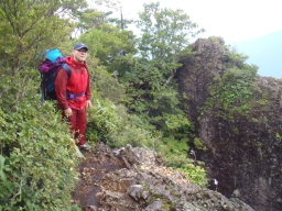 | 露岩の横に岩峰があったので登ってみました。 下記は祖母に向かう途中のやせ尾根です。 名称「馬の背」 |