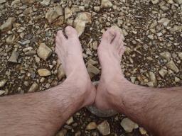 | 登山靴の中まで水が入り込んでいるので、足もふやけて います。 |