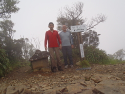 | 祖母山頂です。天気も悪く、時間帯も遅いので 誰もいません。この時間帯から登って来る人は 誰もいないでしょう。濡れた服を脱いで乾かします。 裸になると気持ちよい気温です。 |