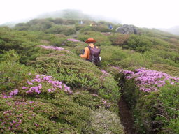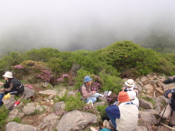 いきなり山頂付近はガスに包まれました。