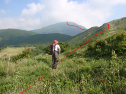 牧草地の登山ルートなので、どこでも登山道のような感じです。 たぶんこのようなルートだろうと推測をたて先に進みます。 8:25 |