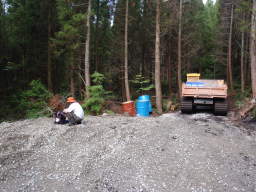 | 林道の工事現場の終着付近です。 林道が西方向に向かっていましたので、これ以上林道を 進んでも道が絶対違う事を確信しましたので、引き返す事に しました。左手方向に登山口がないかどうか探しながら 戻ります。 登山口がわからないのなら、他の山(猟師山)でも登ろうかと 半分以上あきらめながら戻ります。9:07 |