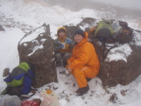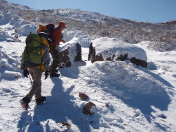 2009年12月23日に、登山した時は、吹雪でここの場所で食事をして引き返しました。その時の様子