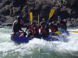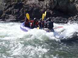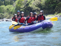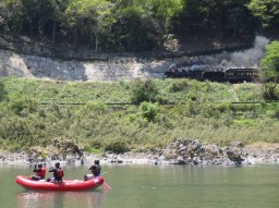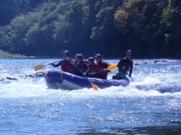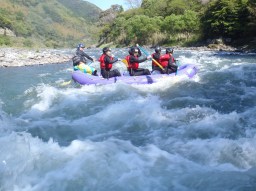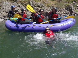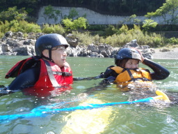 ライフジャケットを着用しているので、ゴムボートが転覆しても問題ありません。