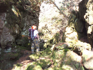 仙人岩です。両側に岩壁がそそり立ちその間を抜けていきます。