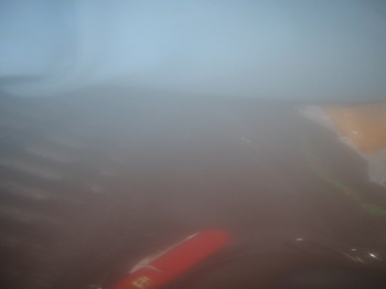| テントの中の様子です。これがこのカメラでの最後の写真です。カメラの中に水がはいって使えなくなりました。以前沢登りした時は、少々濡れても大丈夫でしたが、今回の登山は沢登り以上の水を浴びる事になりました。 ここの標高は約1,800 mです。(平地より約11℃低い気温です。)濡れた身体や衣服をストーブで乾かしますが、強風と豪雨で、テントから雨水が漏れてきます。(新品のテントですが・・・) 疲れて寝ますが、寒さで2〜3時間おきに目が覚めます。その度に、ストーブをつけて身体を温めます。(カイロが欲しいと思いました。) テントでは雷は避けられません。(小屋に泊まりましょう。) |
