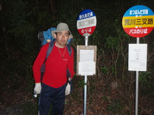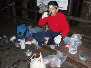 ライトをつけながらここから屋久杉ランドまで歩きます。