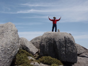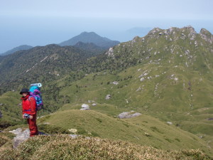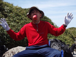 永田岳への分岐点「焼野三差路」でリンゴを食べます。