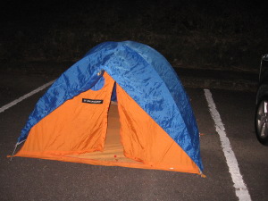 高千穂河原ビジターセンターの駐車場にてテント泊