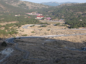 韓国岳登山口よりえびの高原バス停方面を望む