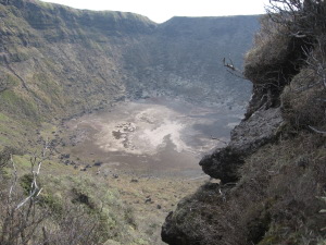 火口まで降りて落書きしています。