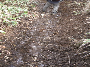 山頂付近の日陰の登山道は4月08日でも霜柱あり