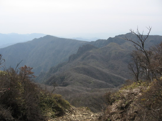 晴れの日に見えた祖母山山頂からの展望(2007年04月08日撮影:黄砂の影響あり)