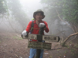 | 天候は雨ではないですが、尾根は霧の中です。 尾平越トンネルから縦走コースの尾根の登山道が、豪雨で削られていてよくわからない上、誤った道しるべの標識があり、正しい道を探すのに10分ほど時間を余計に費やししました。誤った標識は、撤去しました。 |