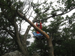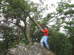 尾平越から古祖母山へ向う縦走路の途中です。 尾根からの展望です。ほとんど見えません。 |