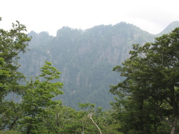 九折越まで登ると、傾山の一部が見えます。