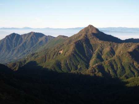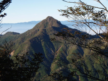 鹿納山付近の尾根から見える日隠山(1544.2m)です。