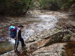 | さらに上流に行くと平らなテーブル状の岩を清流が流れます。 | |