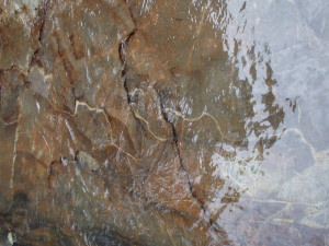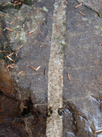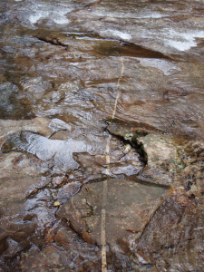 テーブル状の岩に道路のセンターラインのようなはっきりしとた白い線がありました。 下記はその拡大 ![]() |