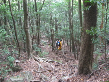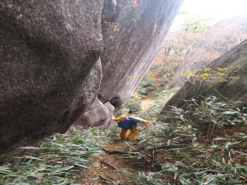 巨石の間を抜けて山を降ります。