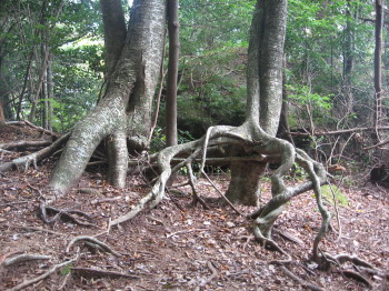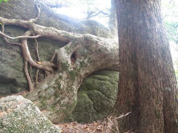 巨石に根をまく木です。