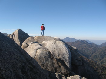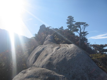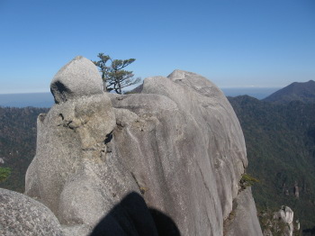 下ワク塚の岩峰を上に縦走して中ワク塚へ向かいます。