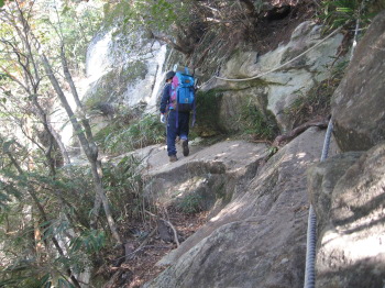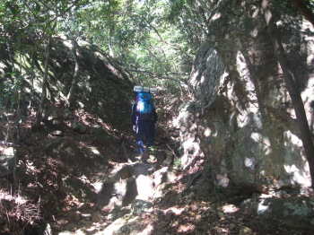 巨石と原生林の登山道です。