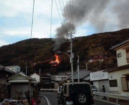 ポンプ車など十数台が駆けつけたが神社が道路から30メートルほど高台にあるため消火に手間取り、約3時間40分後に鎮火した。