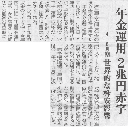 年金運用、10年度は2999億円の赤字読売新聞 2011年07月06日(水) 公的年金の積立金を運用する年金積立金管理運用独立行政法人(GPIF)は6日、