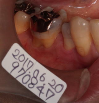 主訴:歯根分岐部部分が時々痛い。また冷たい水がしみる。