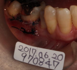 歯肉弁歯冠側移動術と頬側に造骨(骨補填剤)を勧める。