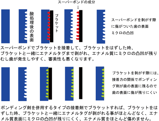 矯正装置(ブラケット)をスーパーボンドで接着する際のエナメル質への影響について