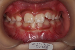 | 2015年03月12日 初診 上顎切歯の反対咬合(右)と歯がはえる場所が悪い。 |