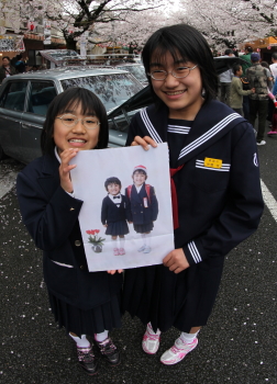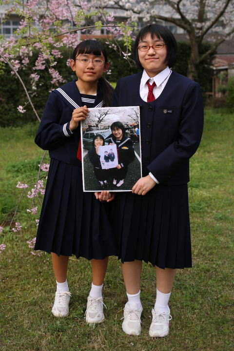 | 幼稚園の時から始めた矯正が、永久歯が 全部生えそろって中学生になりました。 右が長女の綾、左が次女の舞 |
