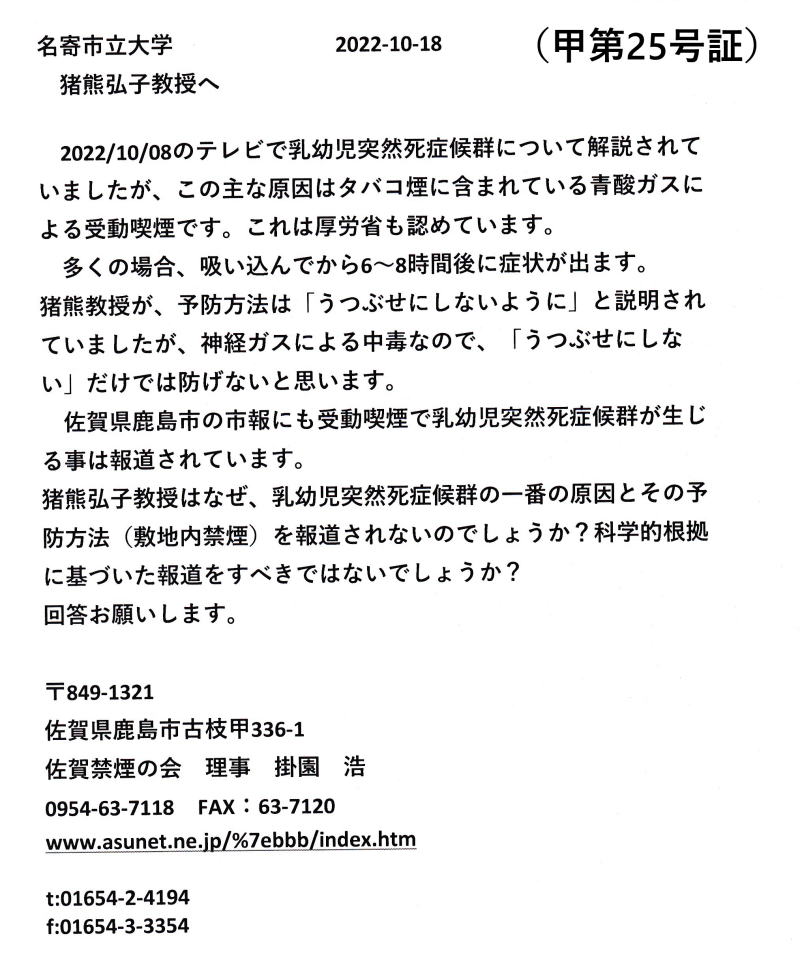 宮崎県は、宮崎市に対して、敷地内禁煙にして、屋外の受動喫煙の徹底と受動喫煙で乳幼児突然死症候群が引き起こされる事を広報活動するよう指導すべきでしょう。
