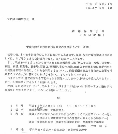 平成15年02月04日 杵保 第2034号 主催:杵藤保健所長