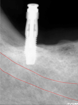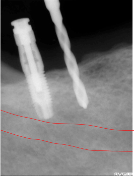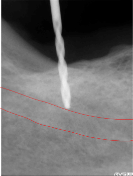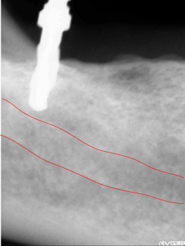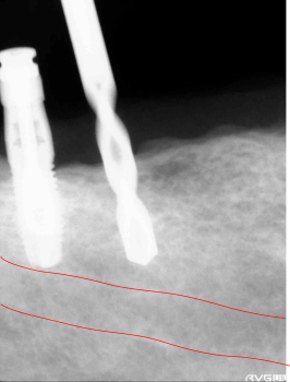 下歯槽管まで、近くなった所で安全性を確認するためレントゲン写真を撮影しまだ余裕があるのを確認します。 | ||