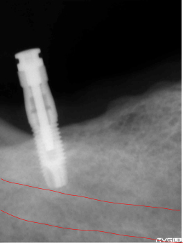 骨の深さが9mm程度だったので、ちょうど下歯槽管の真上ぐらいで止めます。 1本目終了。 |