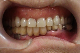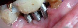 | 同部分をきれいに磨いてやると 金属色のインプラントがきれいに見えます。 インプラント部分の歯ぐきに炎症なし。 |
