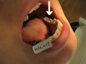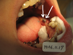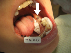 2006年11月17日 1本目のインプラントを入れた状態。 歯ぐきを切らないため、出血はほとんどありません。 |