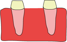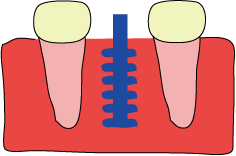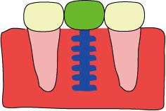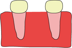 @:今までは、歯がなくなった場合、 → A:隣の歯を削って、かぶせ物(補綴物)をしていましたが → B:インプラントを植えることによって隣の歯を削らずに済みます。こうする事によって、他の歯にも負担がかからなくて済みます。 →