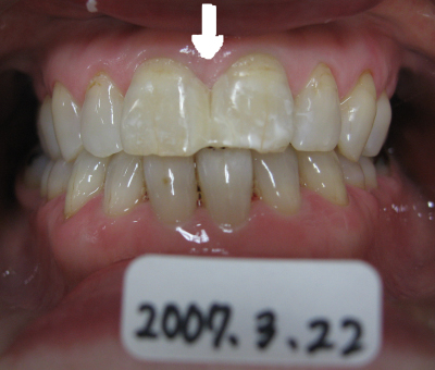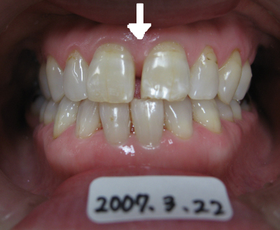 歯と歯の間にプラスチックを流し込んで約10分で治療終了。