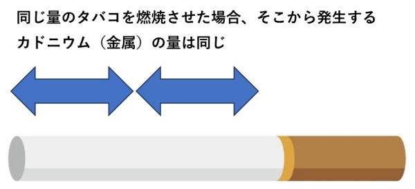 同じ量のタバコを焼却した場合、同じ量のカドニウムが排出される。